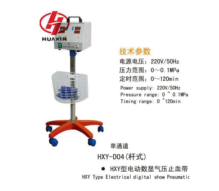电动气压止血带属于手术室、急诊室、诊疗室设备,主要用于医院的手术室供阻断人体肢体血流用。辅助医生进行外科手术,提高手术质量,减少患者痛苦。止血带按外形分为立式、台式二种、按止血气囊的尺寸大小分为大、中、小三种。本产品的供电形式为交流供电,具有结构简单,使用操作方便,故障率低,噪声小,安全性能好的特点。