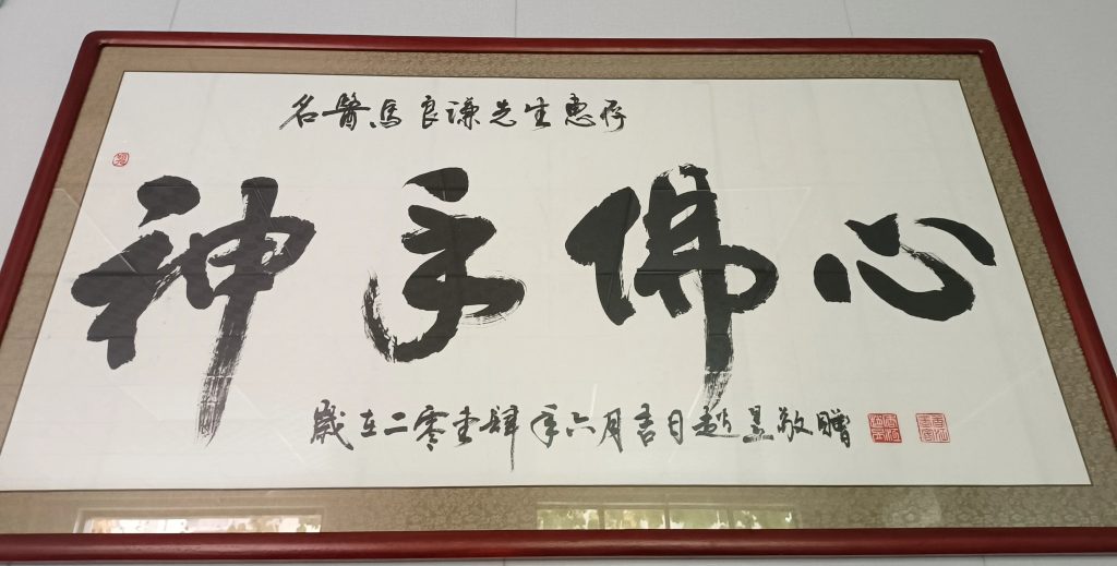 父亲所处的县级医院,患者主要来自农村,加之在过去那个年代,大家都比较穷,农村人往往是小病能扛就扛,万不得已才上县看病。为了治病,经济上也往往是倾其所有,父亲遇到这样的病人,治疗时尽量减轻病人的负担,对那些经济实在困难的病人,父亲甚至会在自己本不宽裕的工资里,挤出钱来给病人垫上。就是后来自己开了医院,也一直秉承着“社会效益第一,经济效益第二”的办院宗旨,在保证疗效的前提下,能保守治疗的,决不轻易手术,决不会为了追求经济效益,而违背自己的良心!有个经父亲治疗痊愈的病人,为表示对父亲的感谢,专门制作了一面锦旗,“医者仁心,菩萨心肠”。寥寥数语,却把父亲为人善良的一面刻画得入木三分!